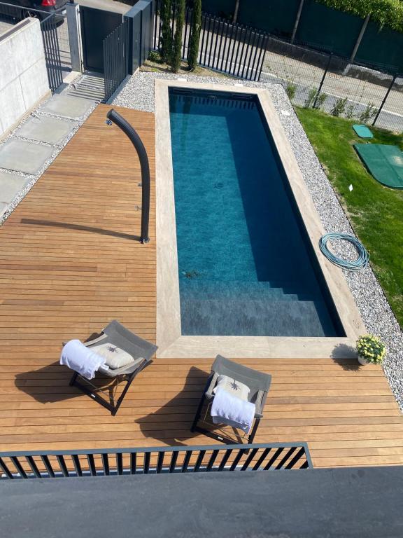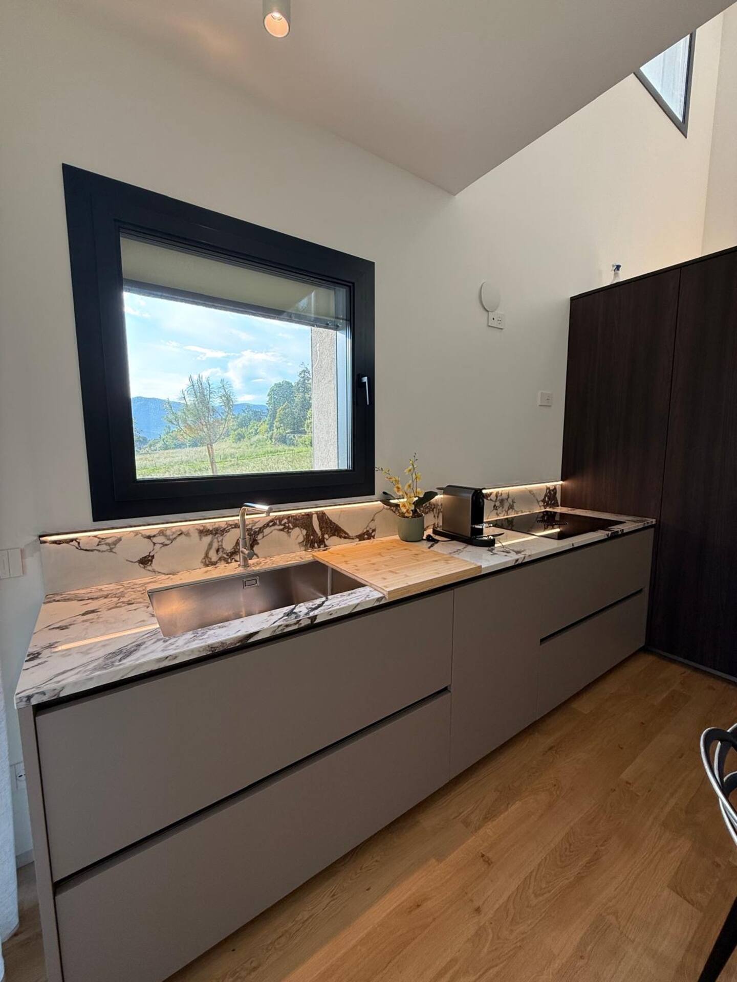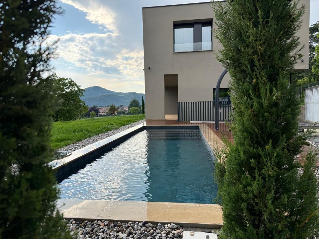 Built in 2025, the villa stands out for its contemporary design, attention to detail, and sustainability, offering a splendid view of the surrounding hills and the nature that embraces it.
