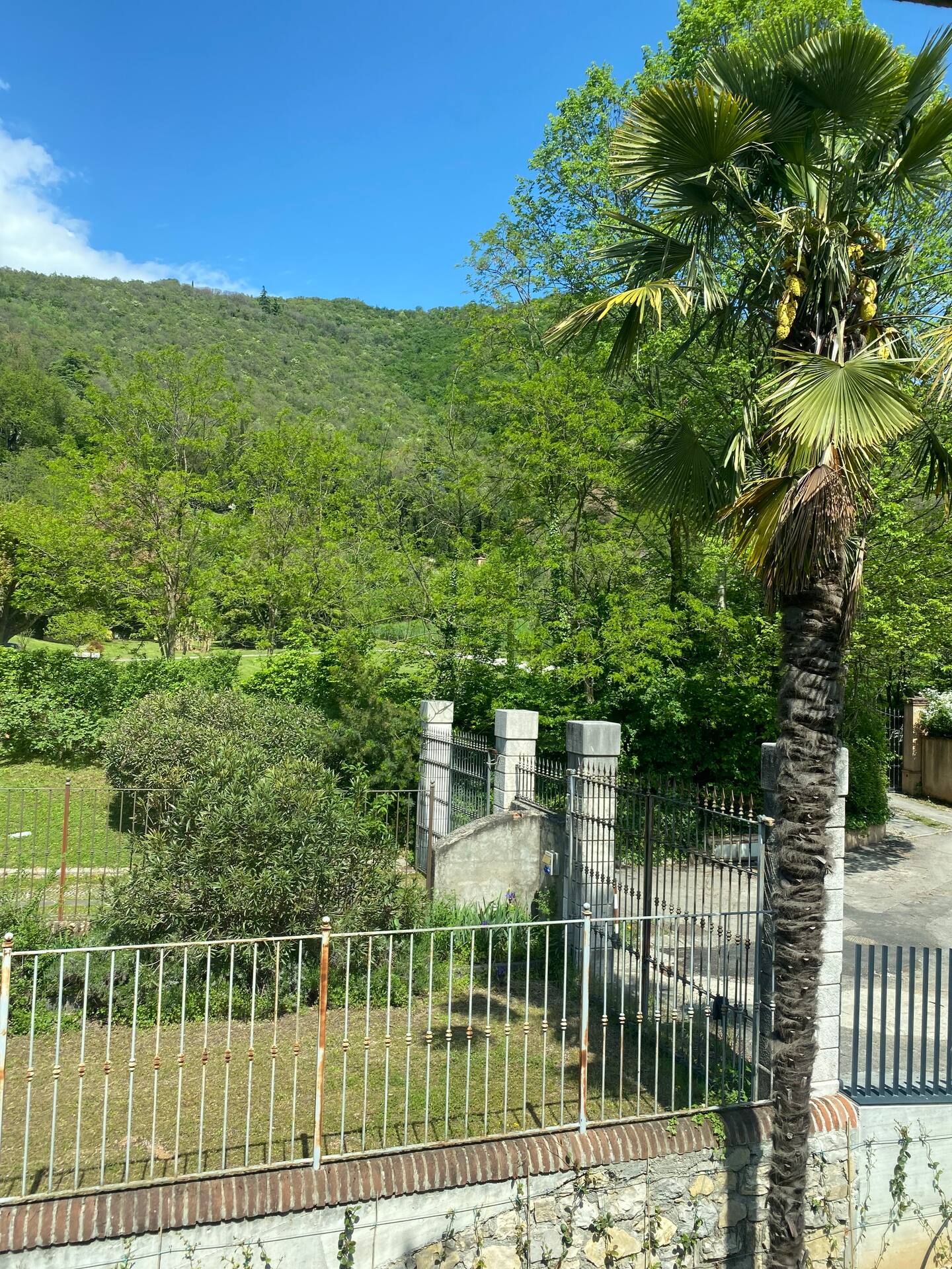 The property of about 150 sqm is spread over three floors, surrounded by a charming fenced garden adorned with olive and fruit trees.