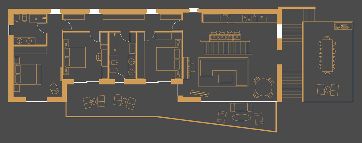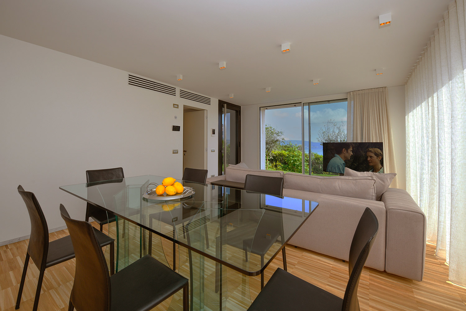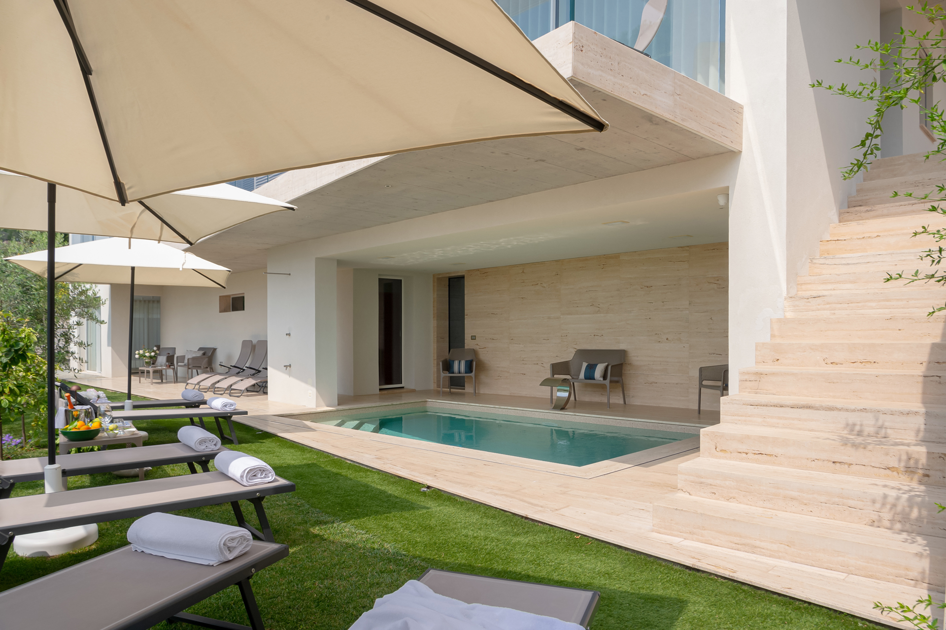 Equipped with every modern comfort, from kitchens with cutting-edge appliances to living areas with flat screen TV and free WiFi, sound system, spa area and pool, to soundproofed interiors and air conditioning. Every detail was designed for your maximum comfort.