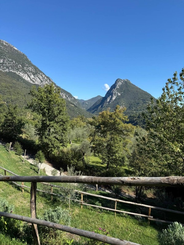 circondata da un incantevole giardino recintato, adornato da ulivi e alberi da frutto.